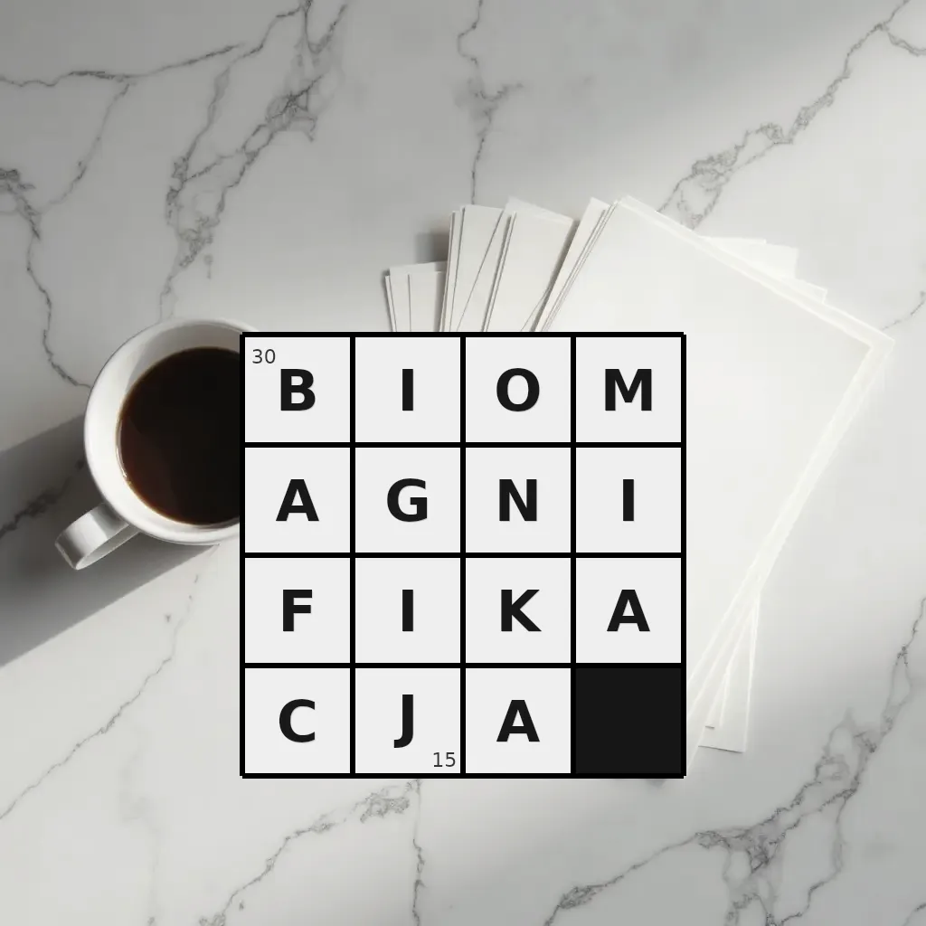 Słowo „biomagnifikacja” ma 15 znaków (bez spacji i łączników).