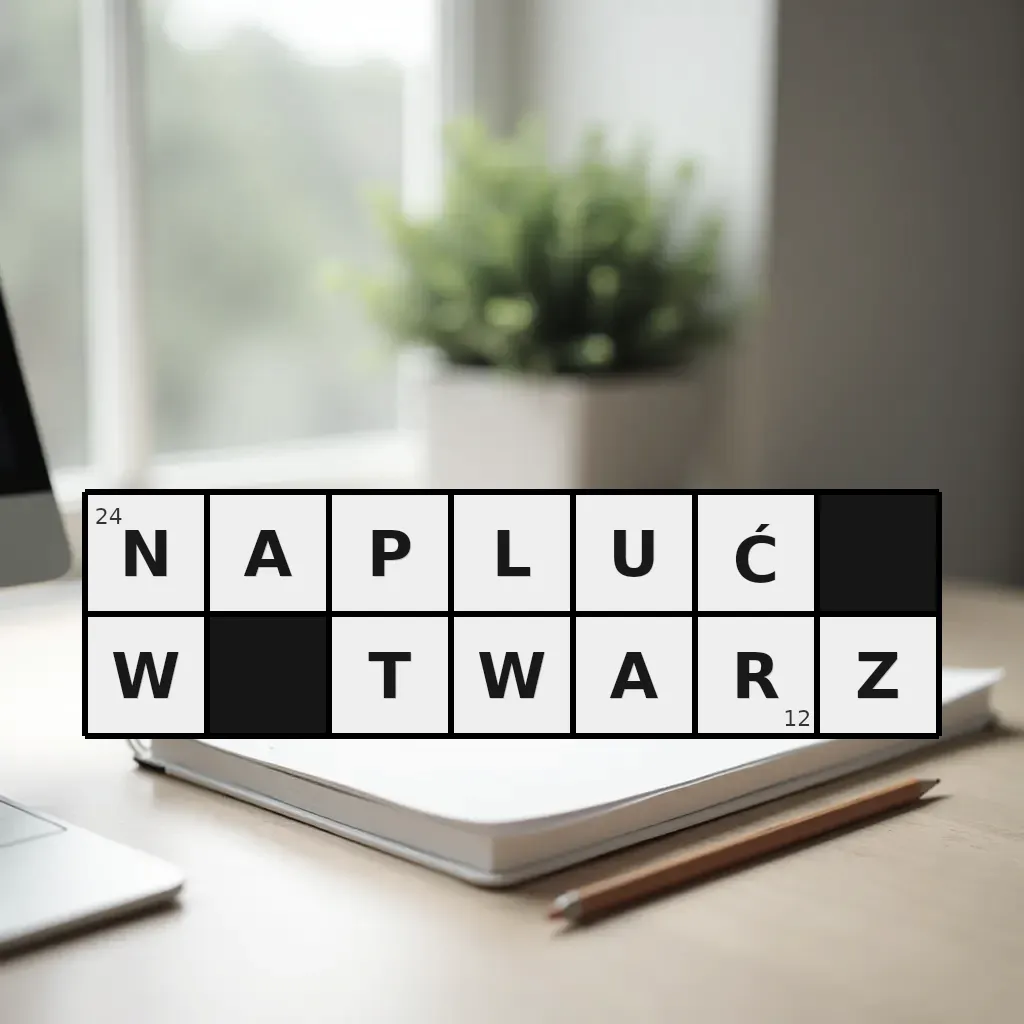 Słowo „napluć w twarz” ma 12 znaków (bez spacji i łączników).