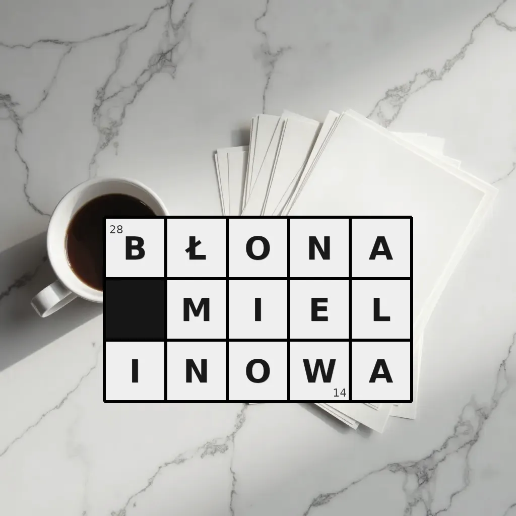 Słowo „błona mielinowa” ma 14 znaków (bez spacji i łączników).