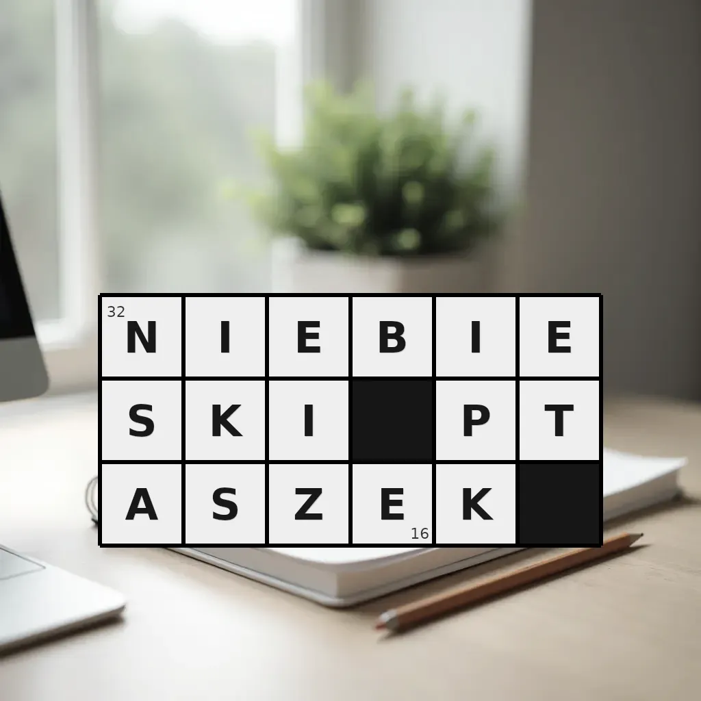 Słowo „niebieski ptaszek” ma 16 znaków (bez spacji i łączników).
