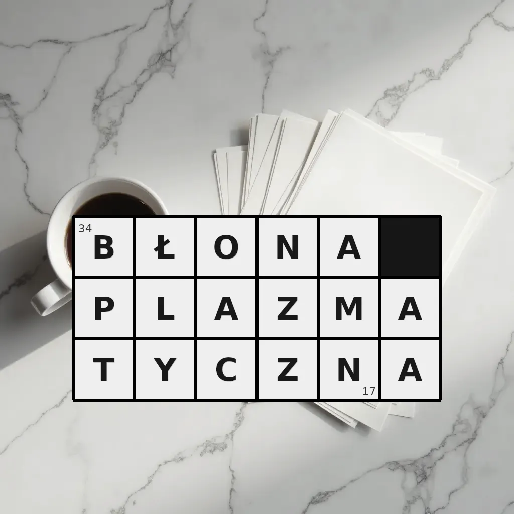 Słowo „błona plazmatyczna” ma 17 znaków (bez spacji i łączników).