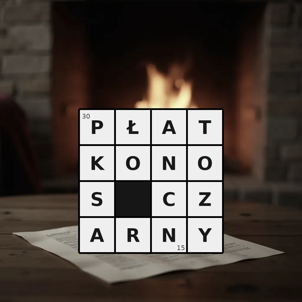 Słowo „płatkonos czarny” ma 15 znaków (bez spacji i łączników).