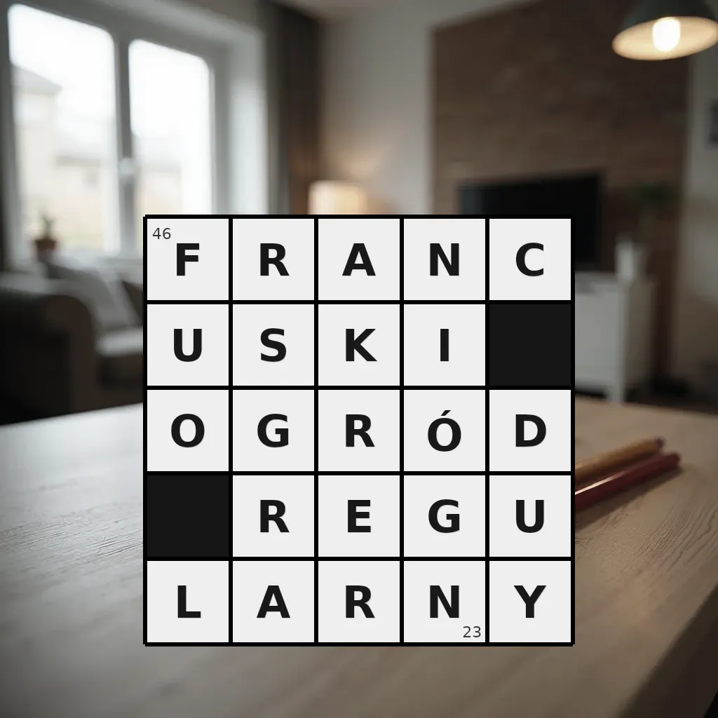 Słowo „francuski ogród regularny” ma 23 znaki (bez spacji i łączników).
