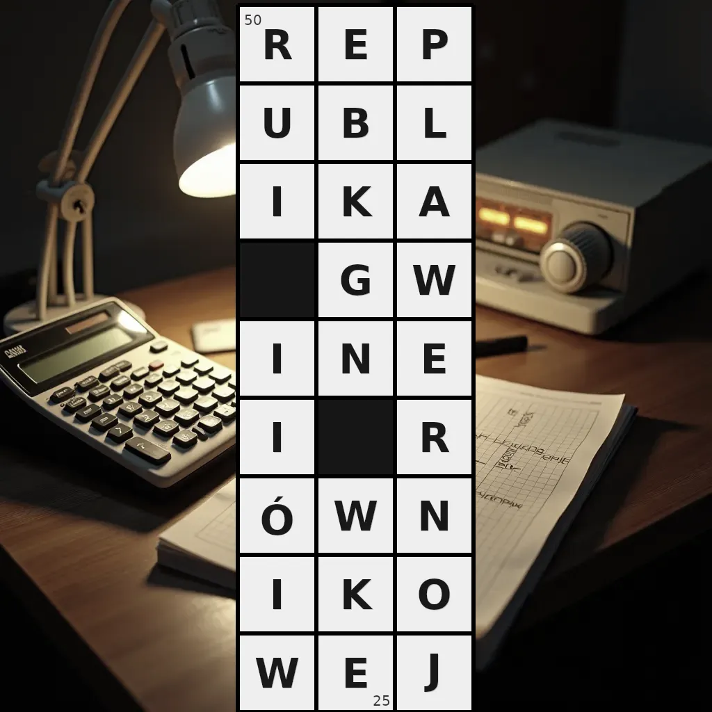 Zawiera litery: A, B, E, E, E, G, I, I, I, I, J, K, K, L, N, N, O, P, R, R, U, W, W, W, Ó