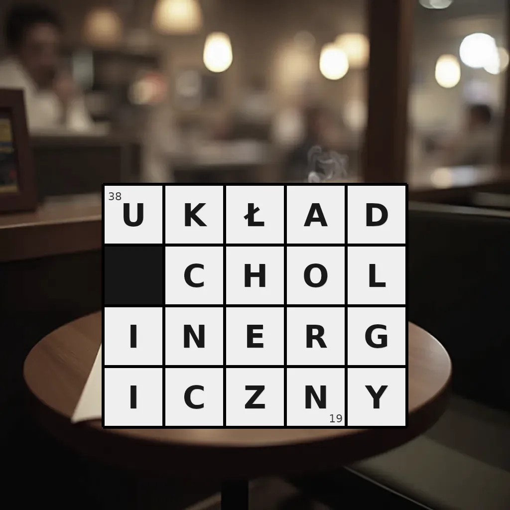 Słowo „układ cholinergiczny” ma 19 znaków (bez spacji i łączników).