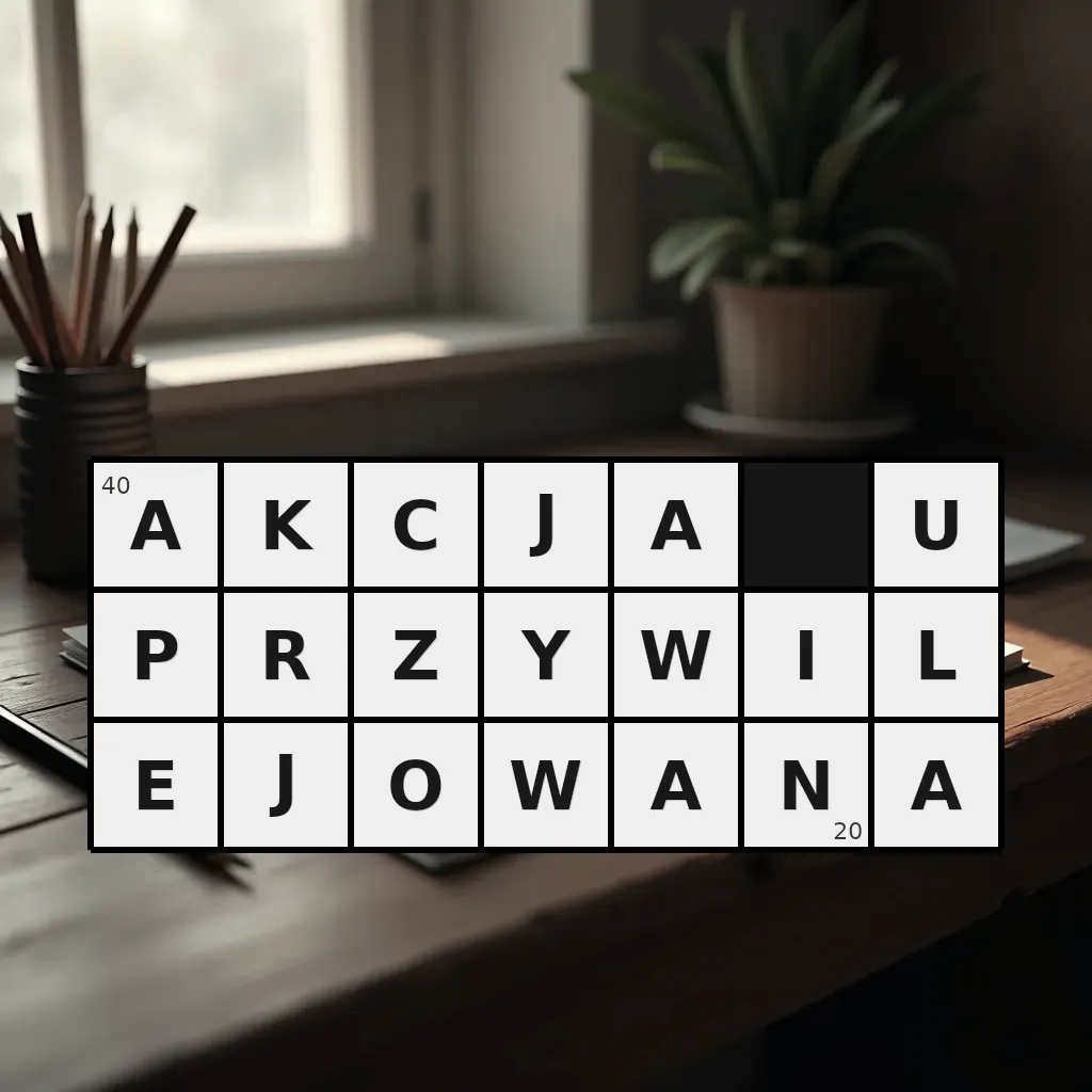 Zawiera litery: A, A, A, A, C, E, I, J, J, K, L, N, O, P, R, U, W, W, Y, Z