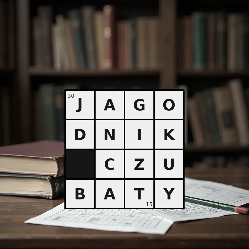 Zawiera litery: A, A, B, C, D, G, I, J, K, N, O, T, U, Y, Z