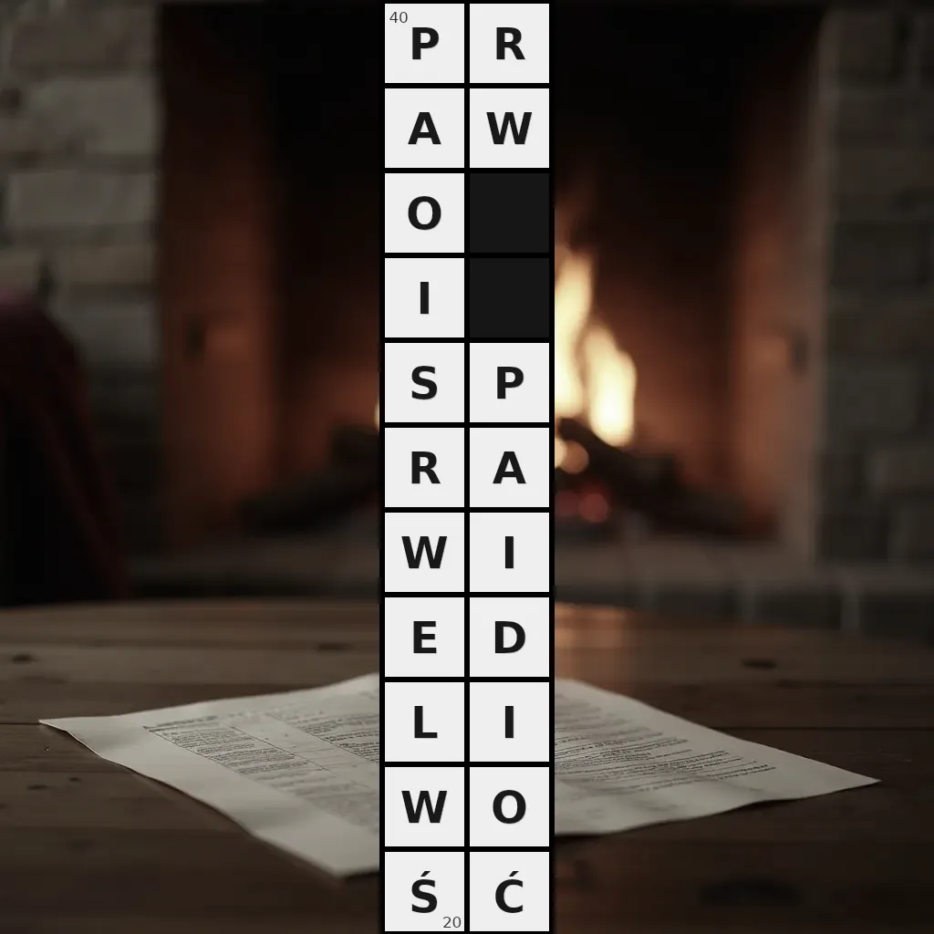Słowo „prawo i sprawiedliwość” ma 20 znaków (bez spacji i łączników).