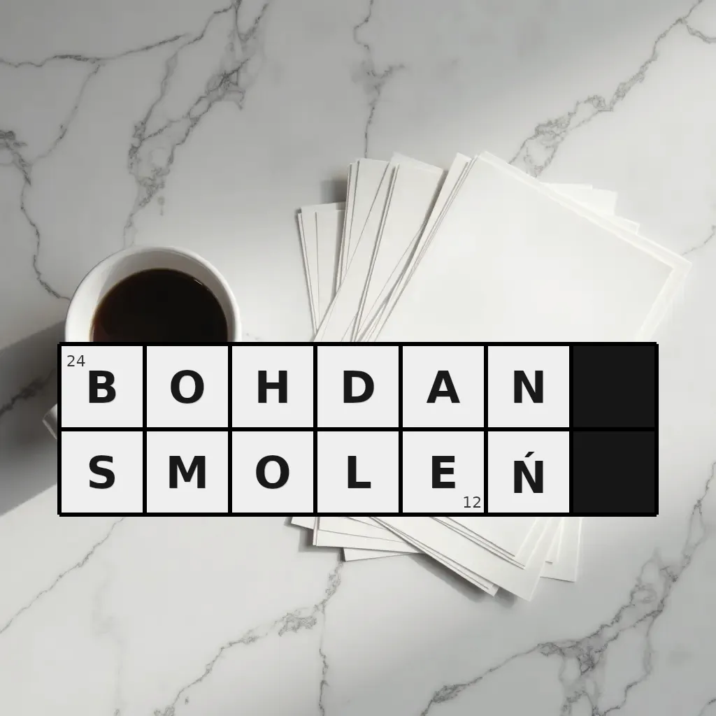 Słowo „bohdan smoleń” ma 12 znaków (bez spacji i łączników).