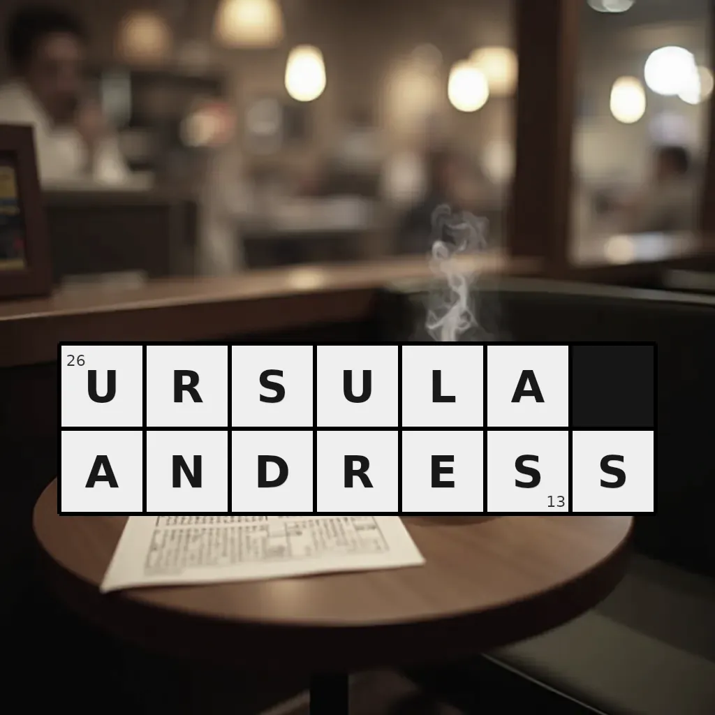 Słowo „ursula andress” ma 13 znaków (bez spacji i łączników).