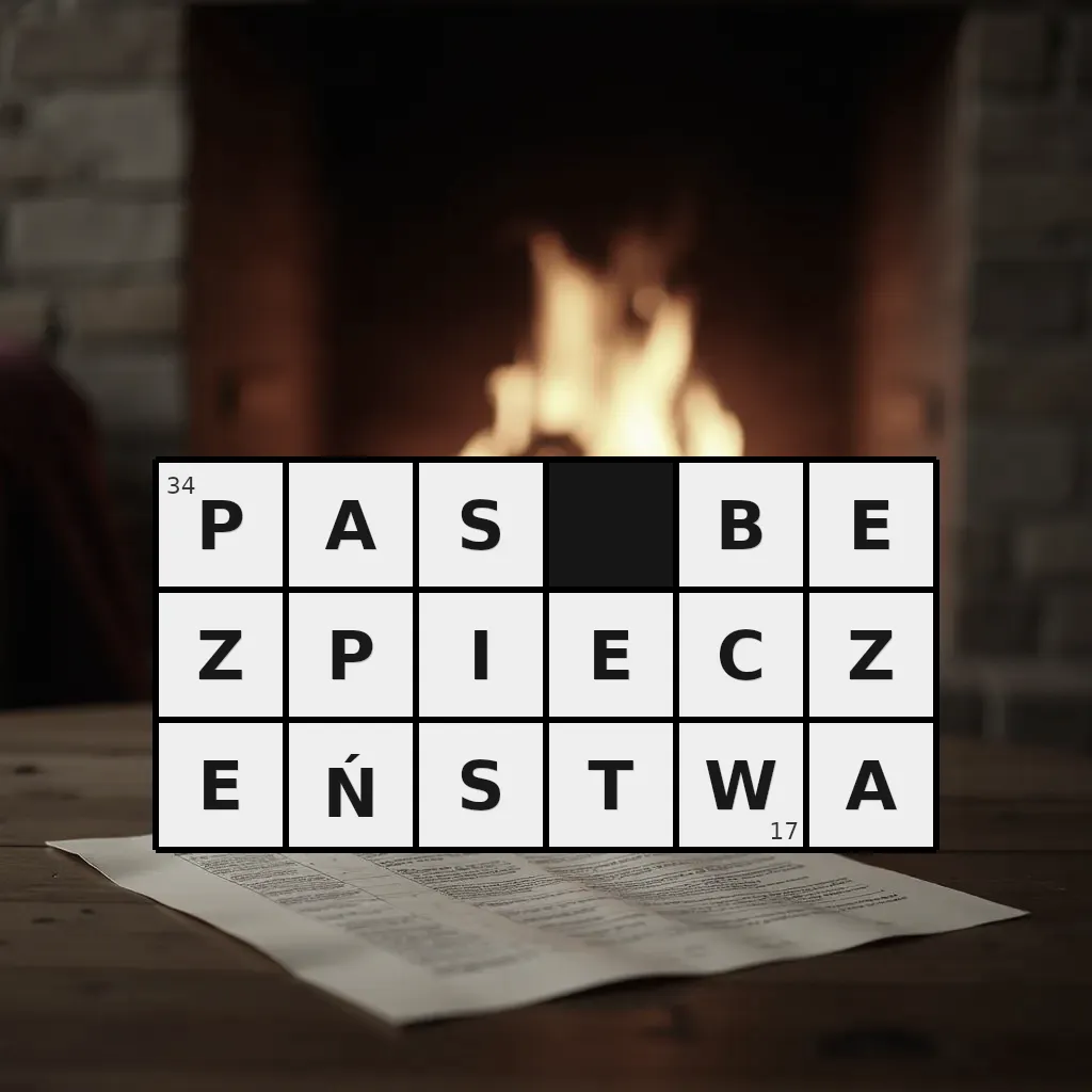 Słowo „pas bezpieczeństwa” ma 17 znaków (bez spacji i łączników).