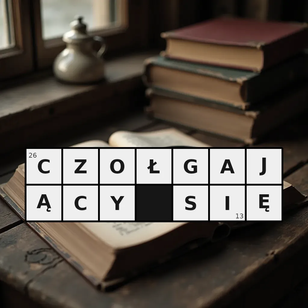 Słowo „czołgający się” ma 13 znaków (bez spacji i łączników).