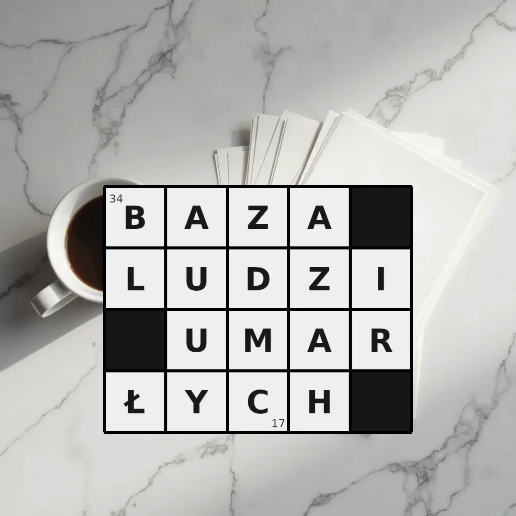 Słowo „baza ludzi umarłych” ma 17 znaków (bez spacji i łączników).