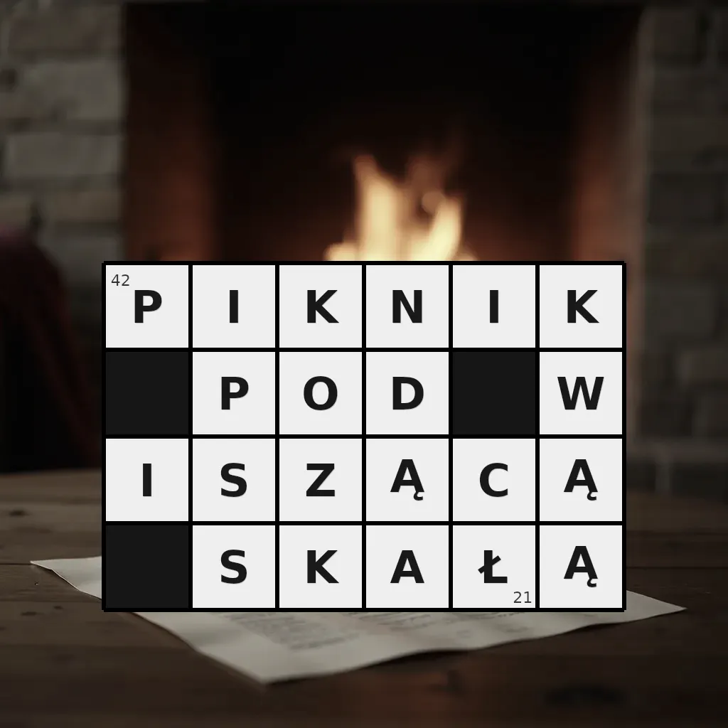 Słowo „piknik pod wiszącą skałą” ma 21 znak (bez spacji i łączników).