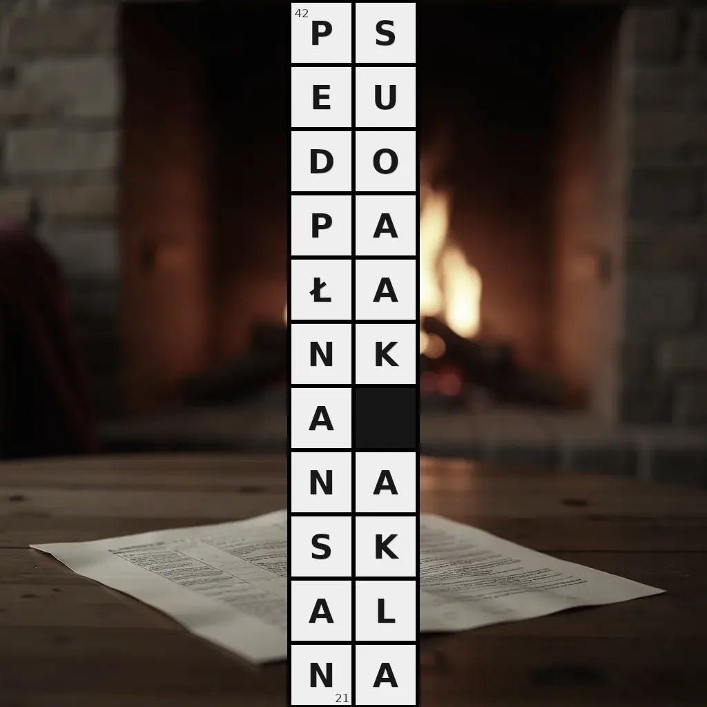 Słowo „pseudopałanka naskalna” ma 21 znak (bez spacji i łączników).