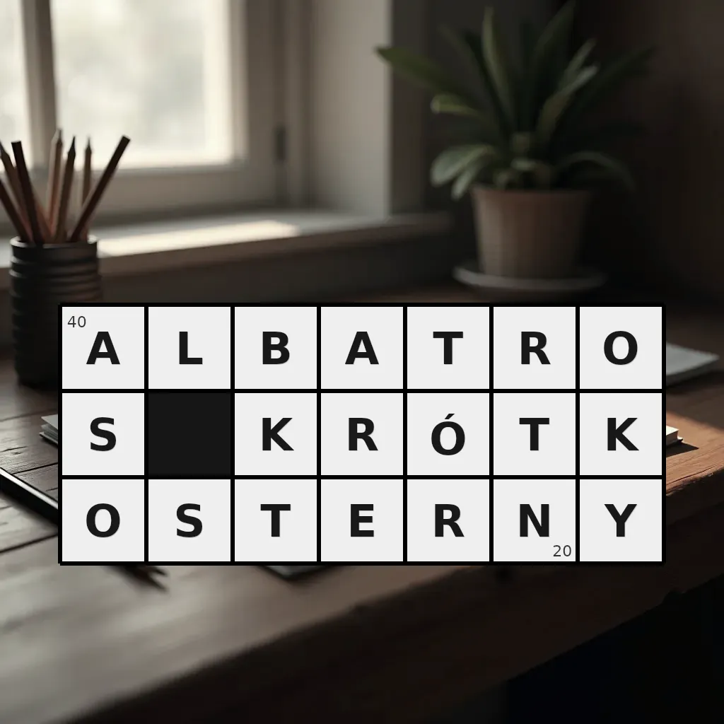 Słowo „albatros krótkosterny” ma 20 znaków (bez spacji i łączników).