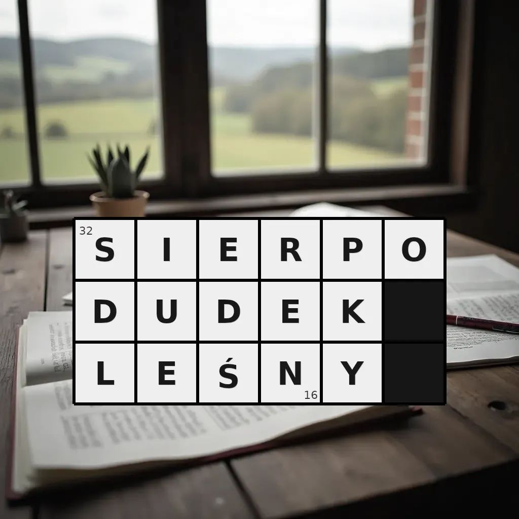 Słowo „sierpodudek leśny” ma 16 znaków (bez spacji i łączników).