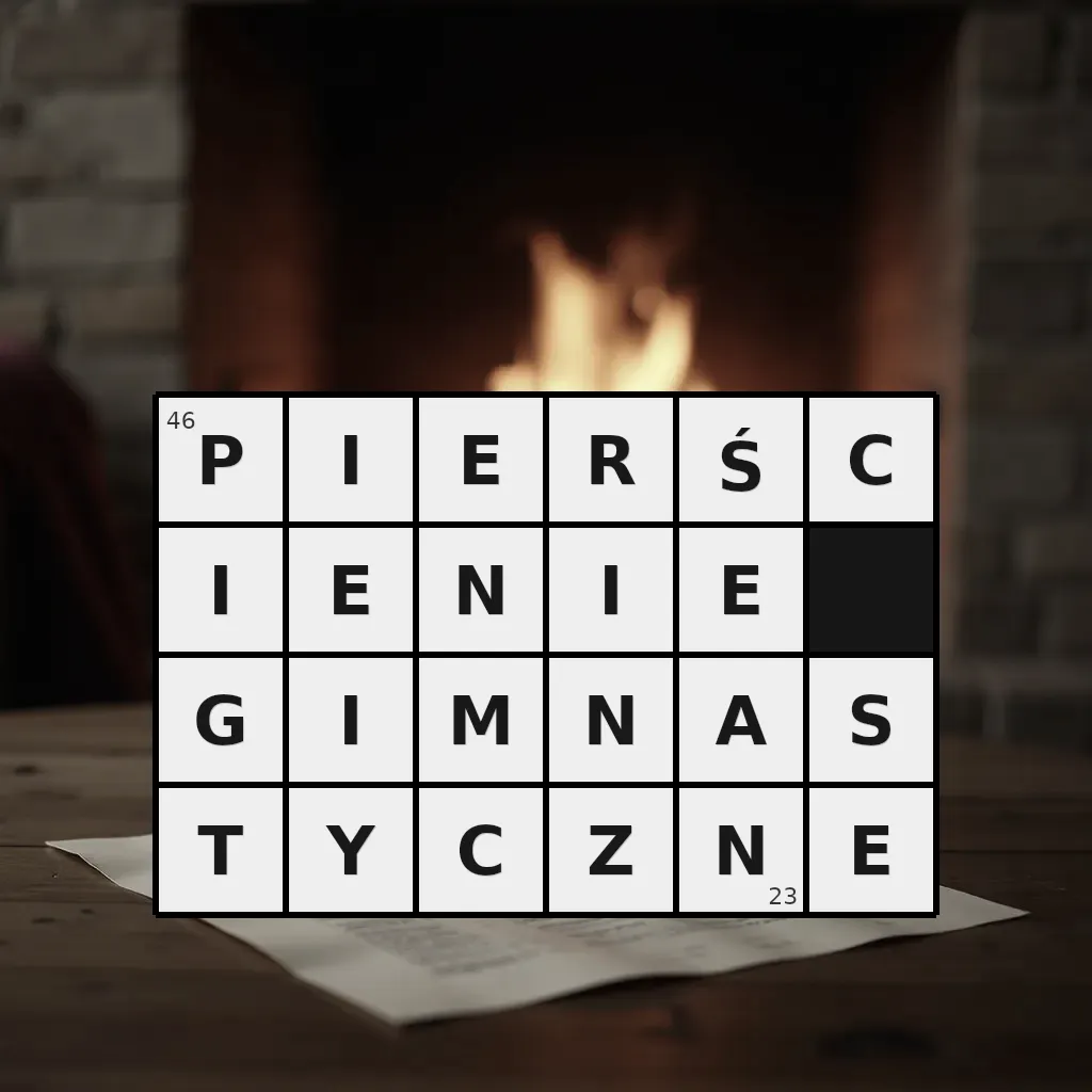 Słowo „pierścienie gimnastyczne” ma 23 znaki (bez spacji i łączników).