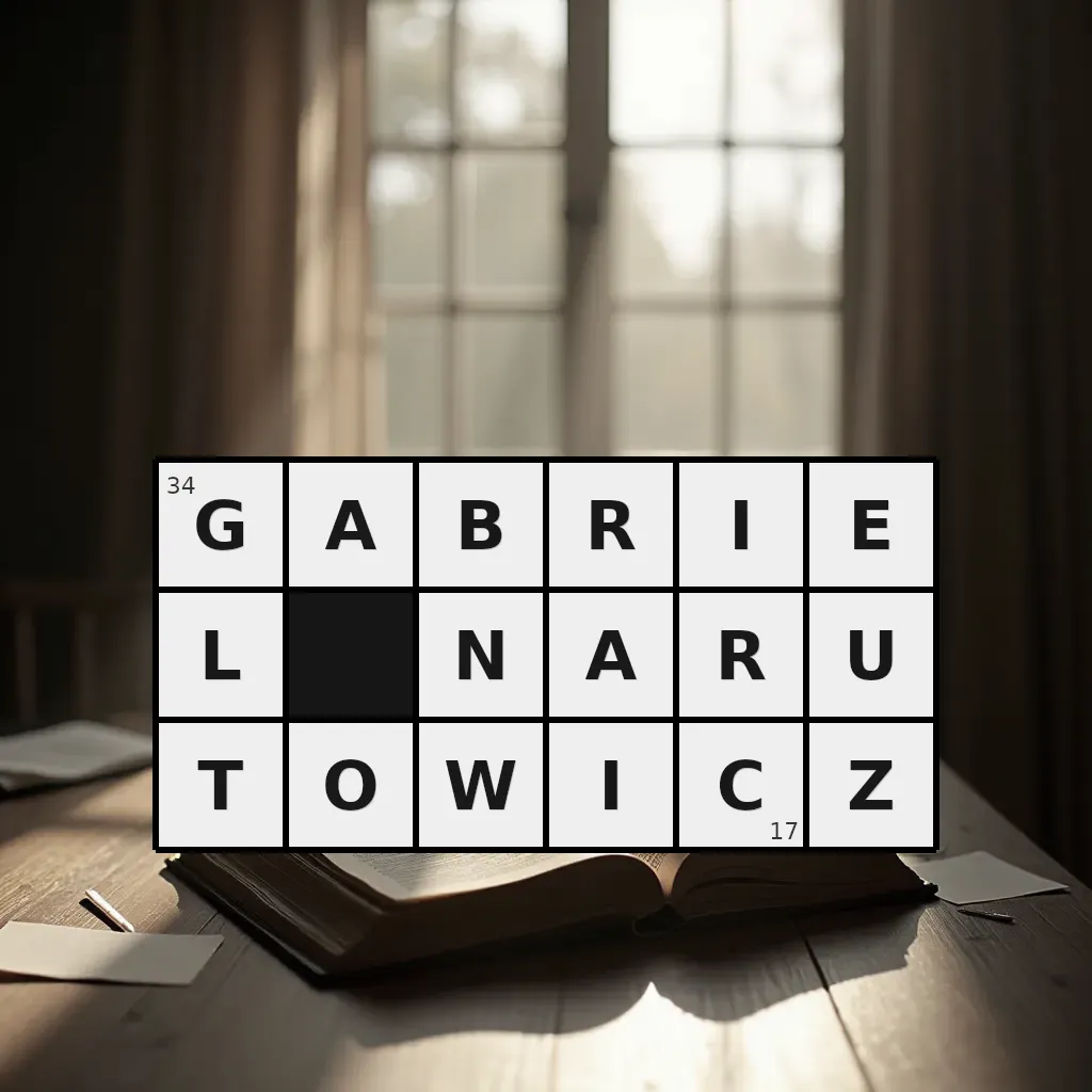 Słowo „gabriel narutowicz” ma 17 znaków (bez spacji i łączników).