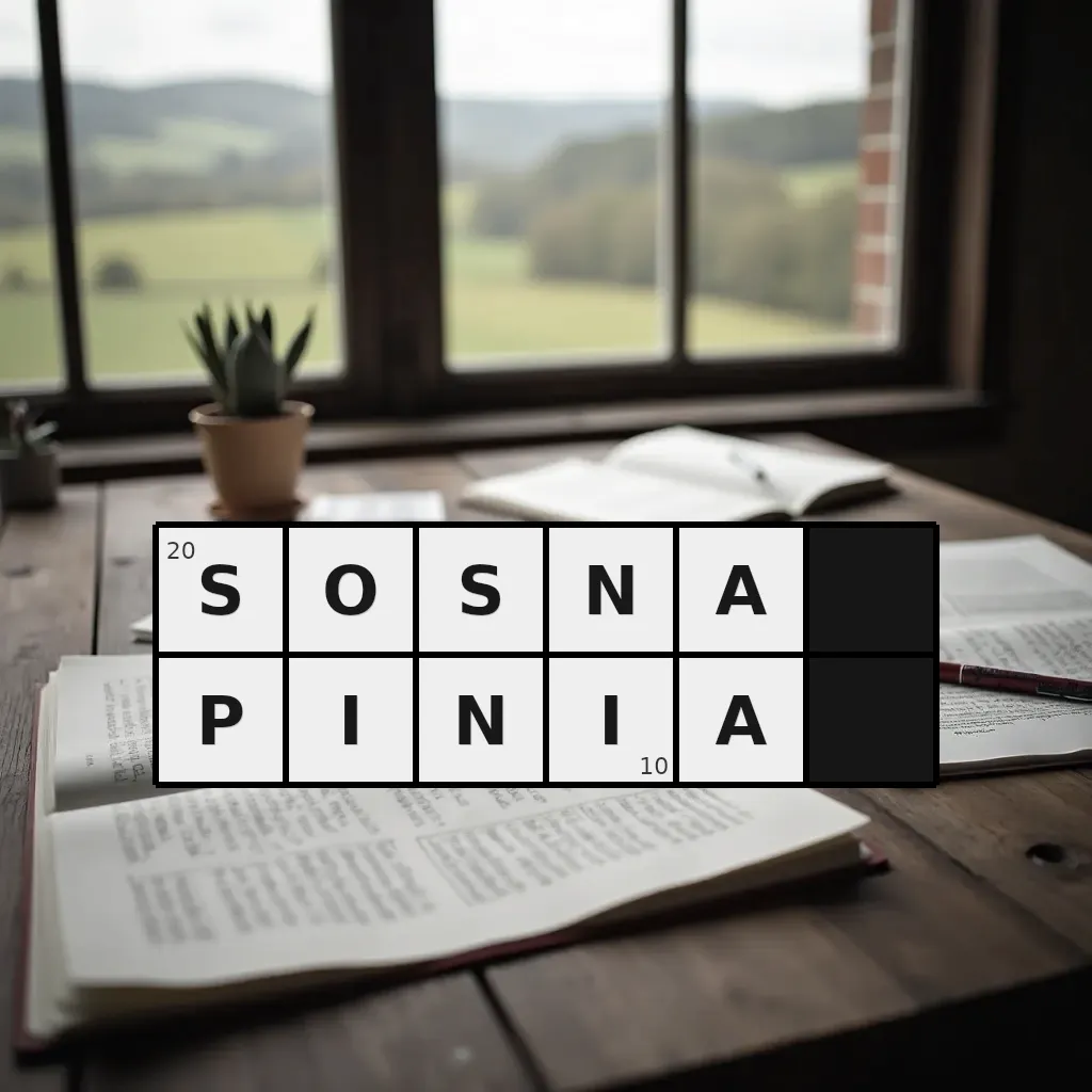 Słowo „sosna pinia” ma 10 znaków (bez spacji i łączników).
