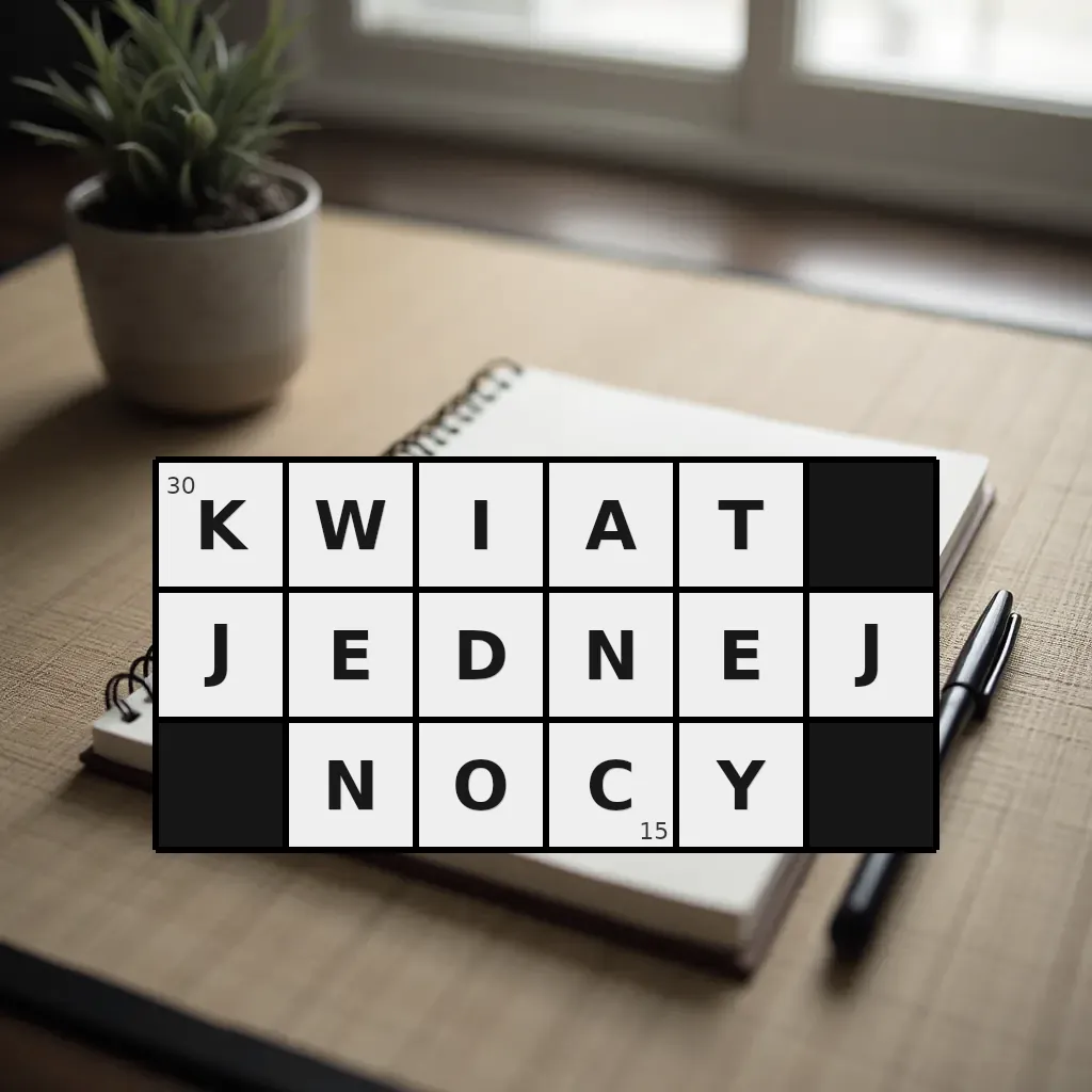 Słowo „kwiat jednej nocy” ma 15 znaków (bez spacji i łączników).