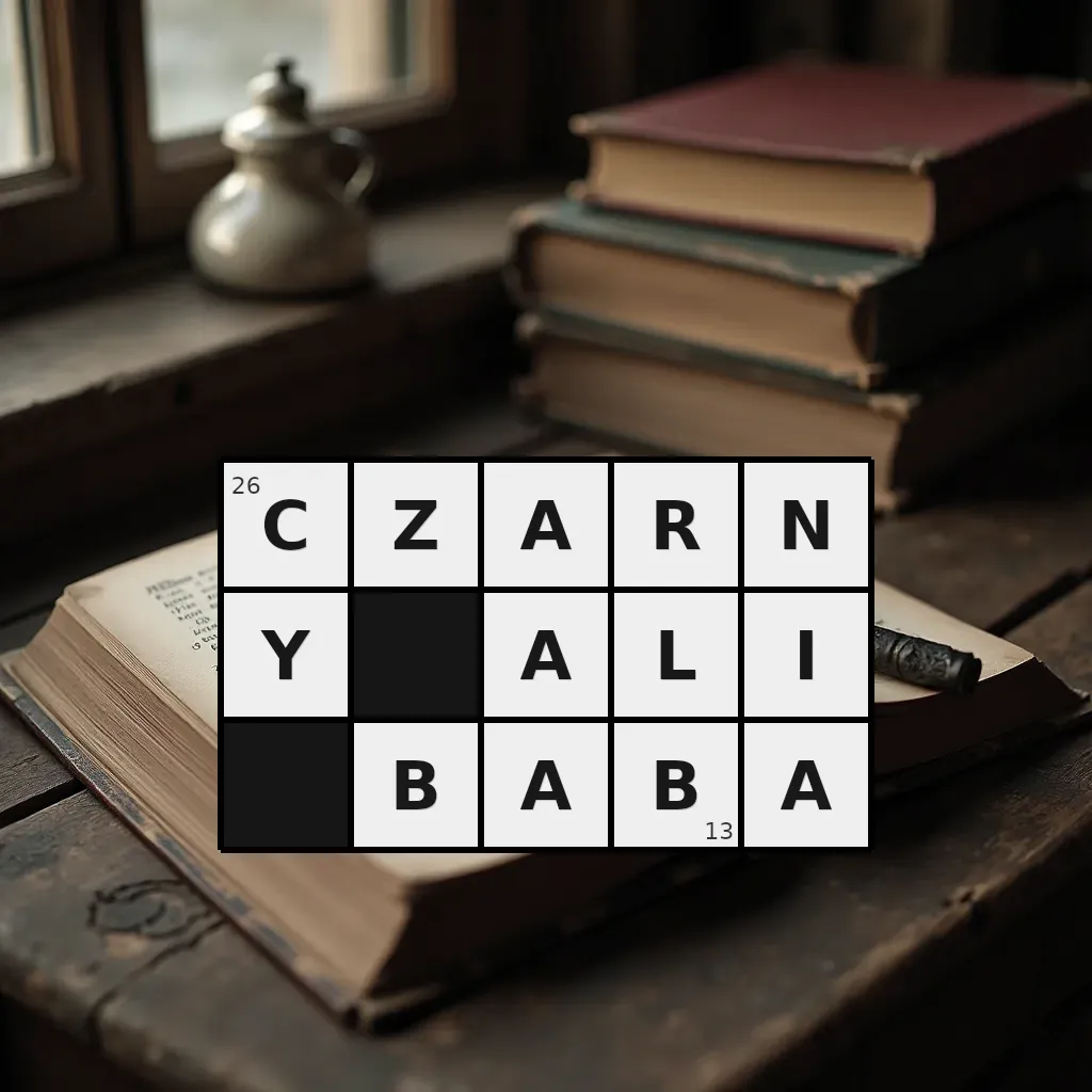 Słowo „czarny ali baba” ma 13 znaków (bez spacji i łączników).