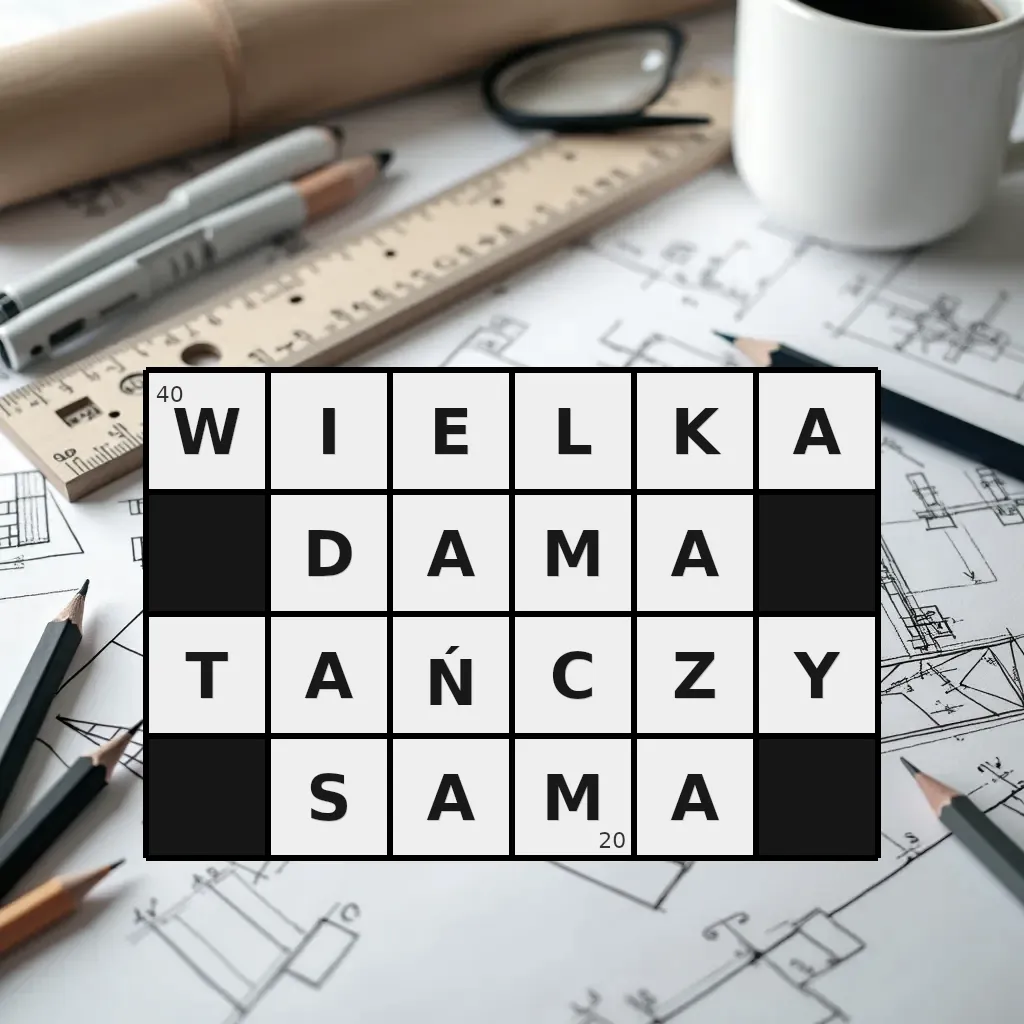 Słowo „wielka dama tańczy sama” ma 20 znaków (bez spacji i łączników).