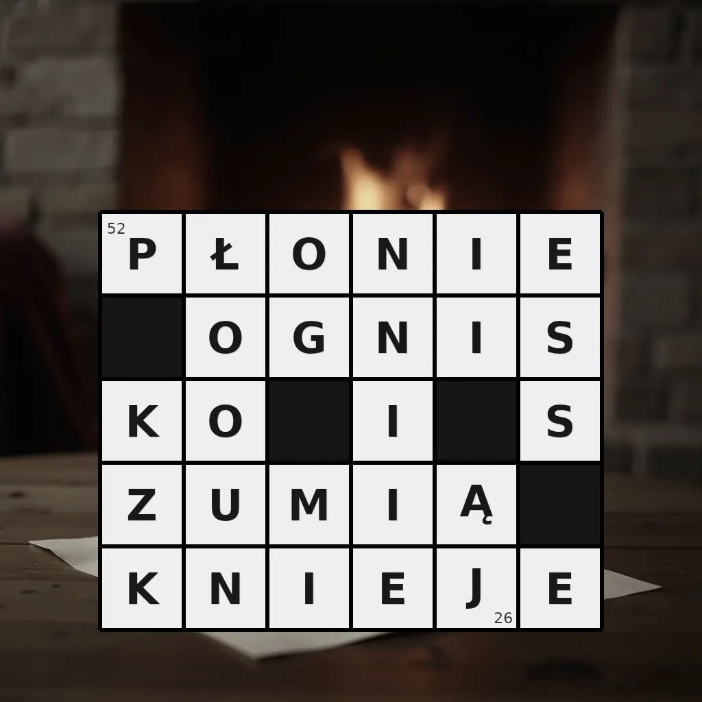 Słowo „płonie ognisko i szumią knieje” ma 26 znaków (bez spacji i łączników).