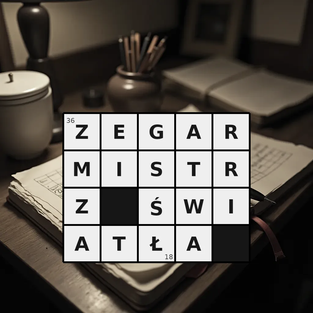 Słowo „zegarmistrz światła” ma 18 znaków (bez spacji i łączników).