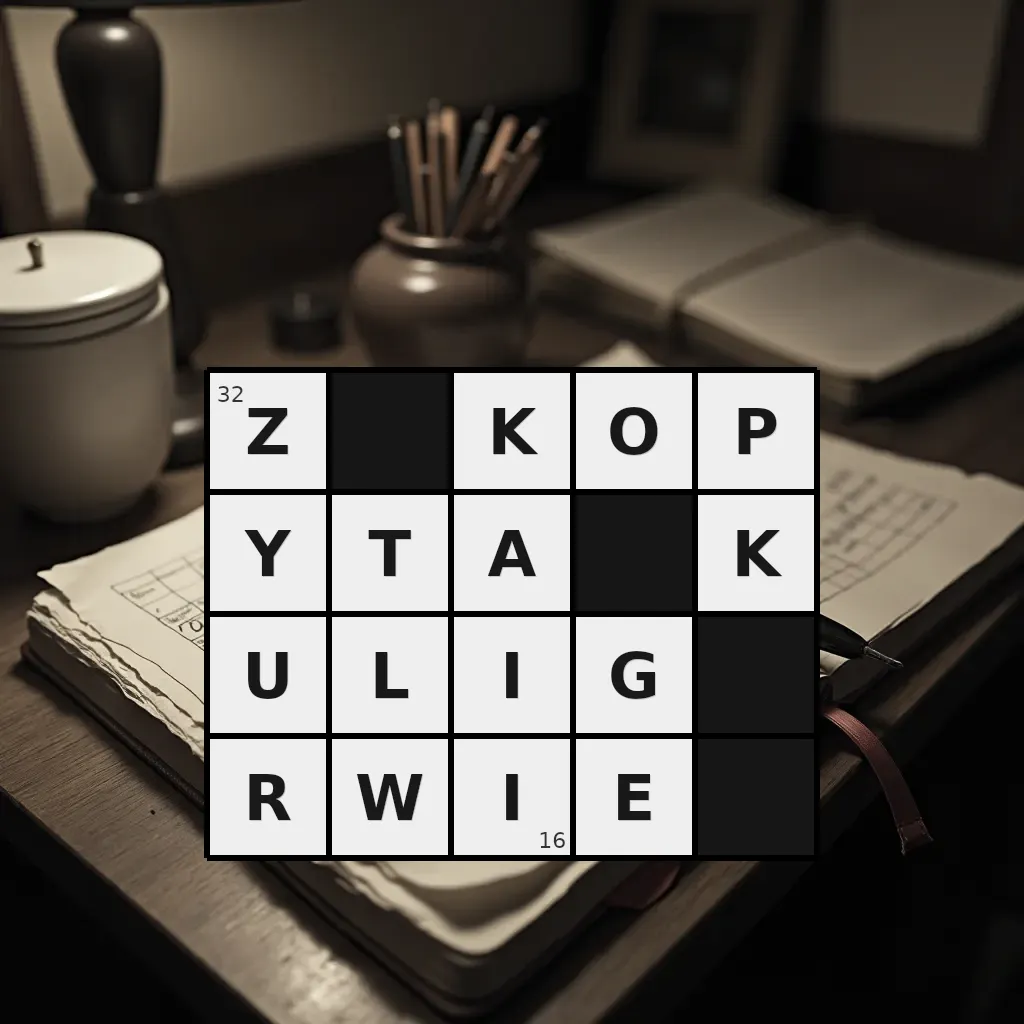 Słowo „z kopyta kulig rwie” ma 16 znaków (bez spacji i łączników).