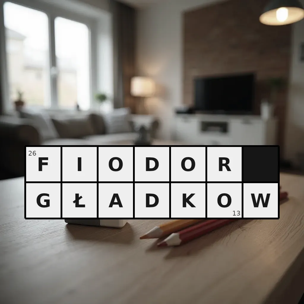 Słowo „fiodor gładkow” ma 13 znaków (bez spacji i łączników).