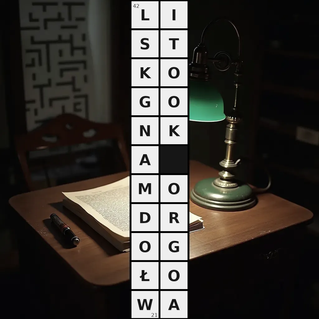 Zawiera litery: A, A, D, G, G, I, K, K, L, M, N, O, O, O, O, O, R, S, T, W, Ł