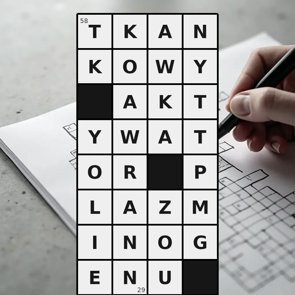 Zawiera litery: A, A, A, A, E, G, I, K, K, K, L, M, N, N, N, O, O, O, P, R, T, T, T, U, W, W, Y, Y, Z