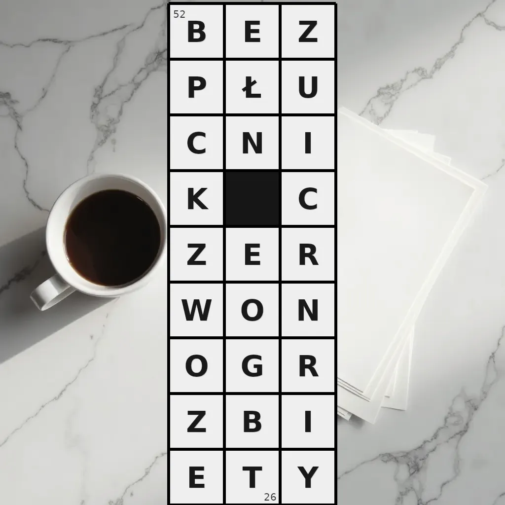 Zawiera litery: B, B, C, C, E, E, E, G, I, I, K, N, N, O, O, P, R, R, T, U, W, Y, Z, Z, Z, Ł