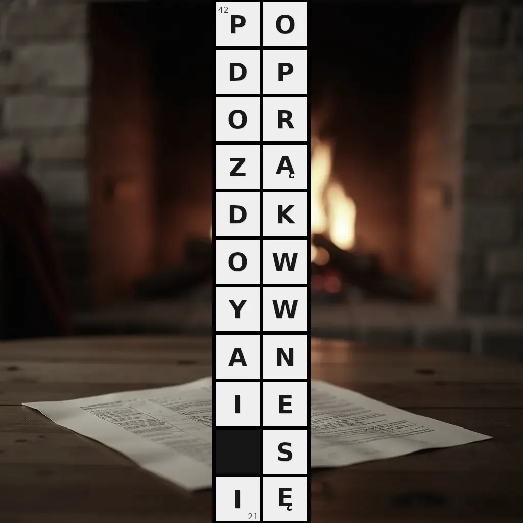 Słowo „podporządkowywanie się” ma 21 znak (bez spacji i łączników).