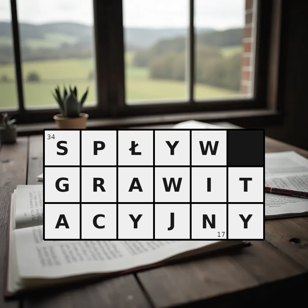 Słowo „spływ grawitacyjny” ma 17 znaków (bez spacji i łączników).