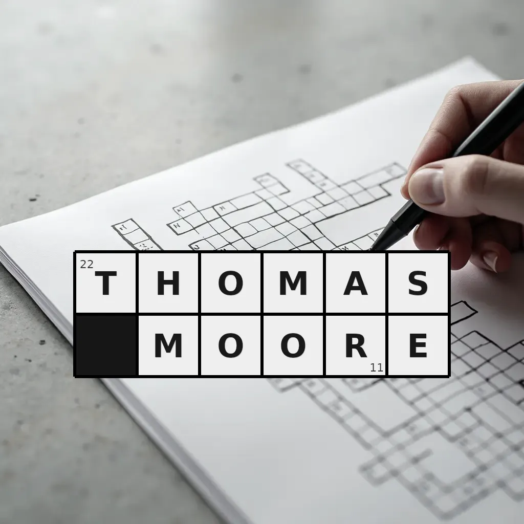 Słowo „thomas moore” ma 11 znaków (bez spacji i łączników).