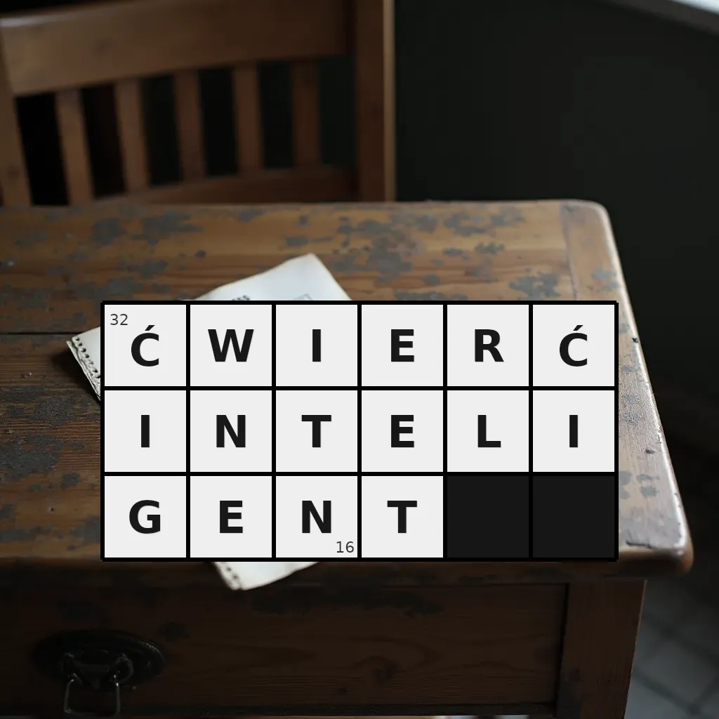 Słowo „ćwierćinteligent” ma 16 znaków (bez spacji i łączników).