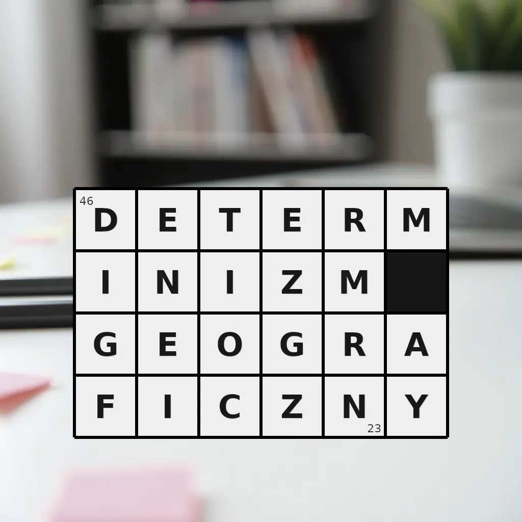 Słowo „determinizm geograficzny” ma 23 znaki (bez spacji i łączników).
