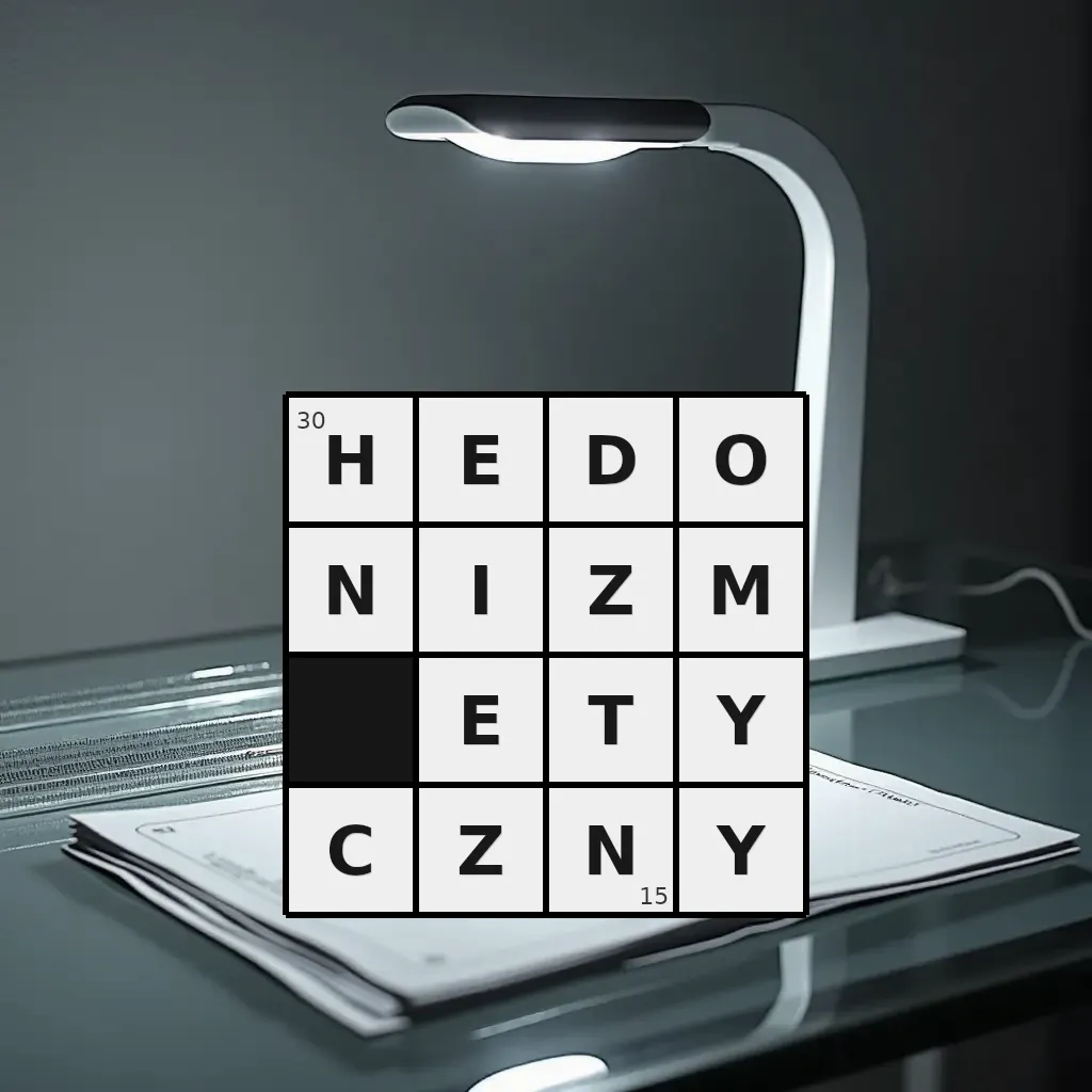 Słowo „hedonizm etyczny” ma 15 znaków (bez spacji i łączników).
