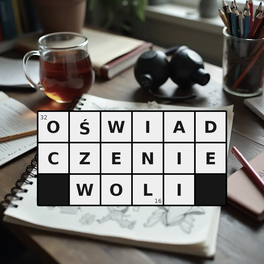 Słowo „oświadczenie woli” ma 16 znaków (bez spacji i łączników).