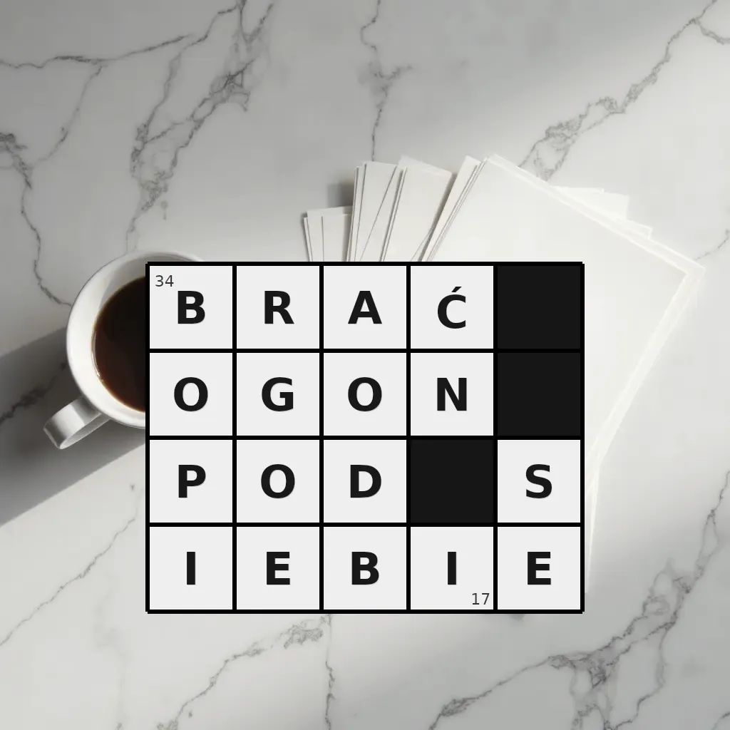 Słowo „brać ogon pod siebie” ma 17 znaków (bez spacji i łączników).