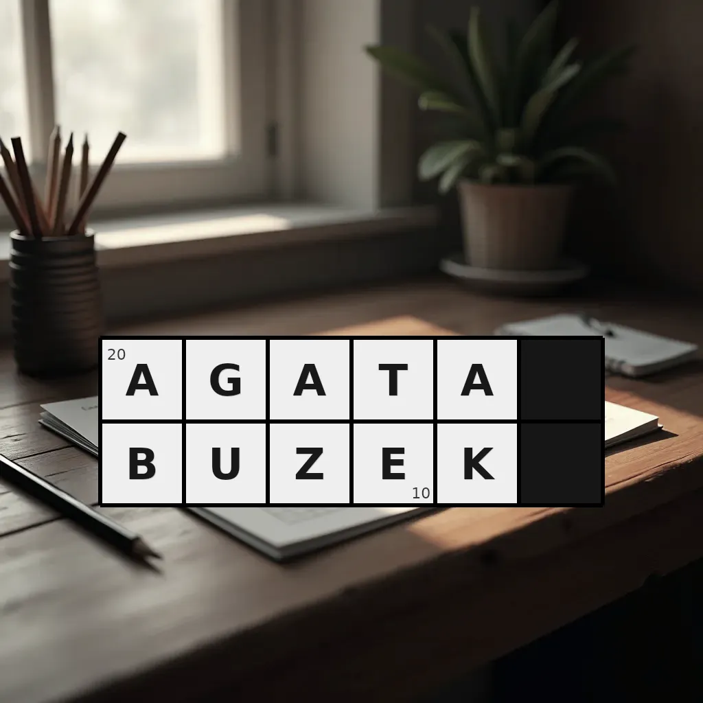Słowo „agata buzek” ma 10 znaków (bez spacji i łączników).