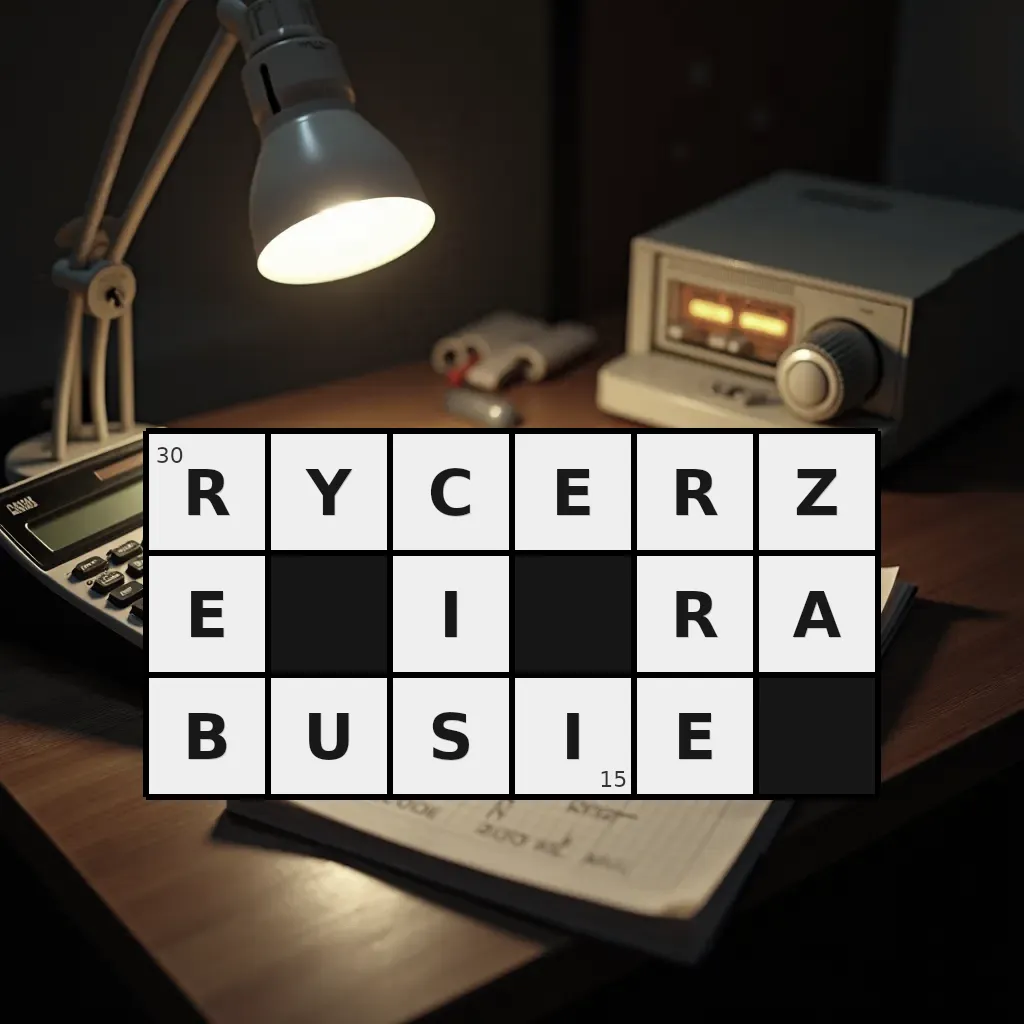 Słowo „rycerze i rabusie” ma 15 znaków (bez spacji i łączników).