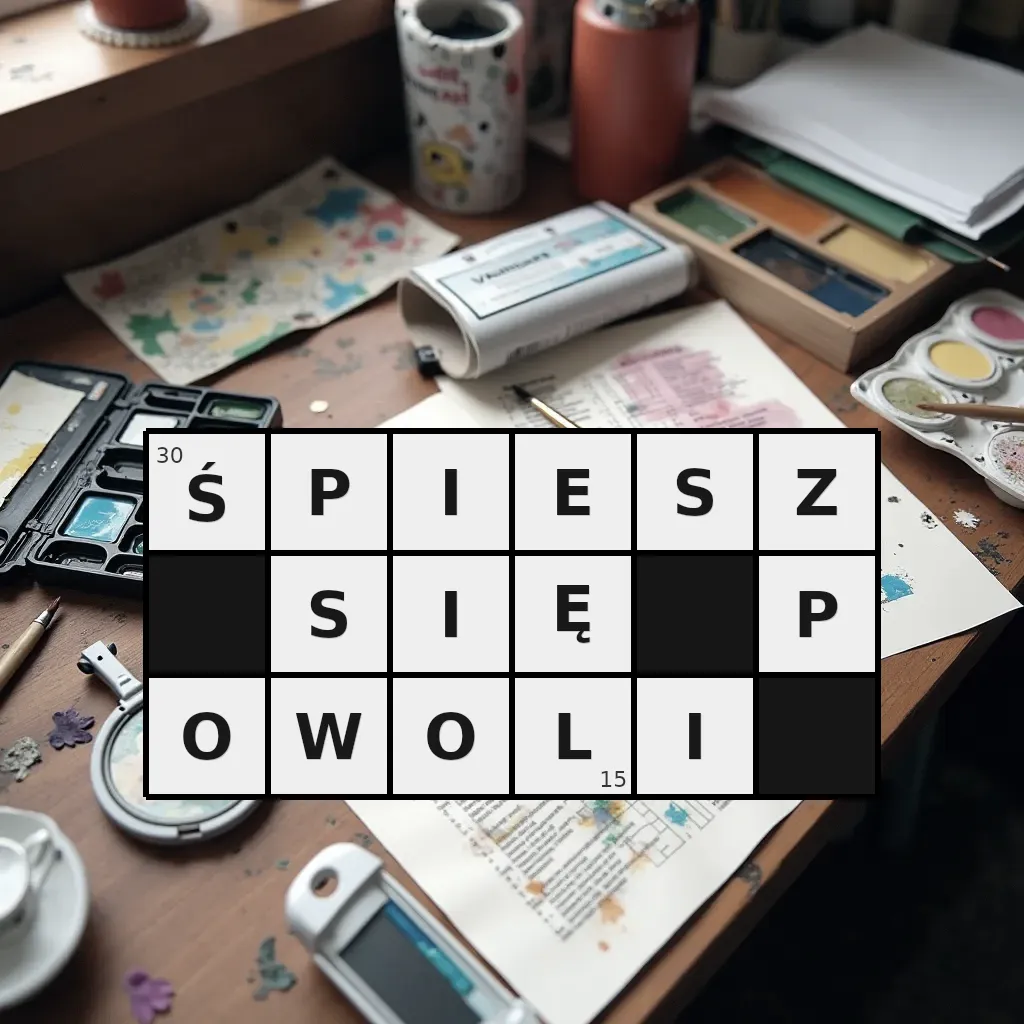 Słowo „śpiesz się powoli” ma 15 znaków (bez spacji i łączników).