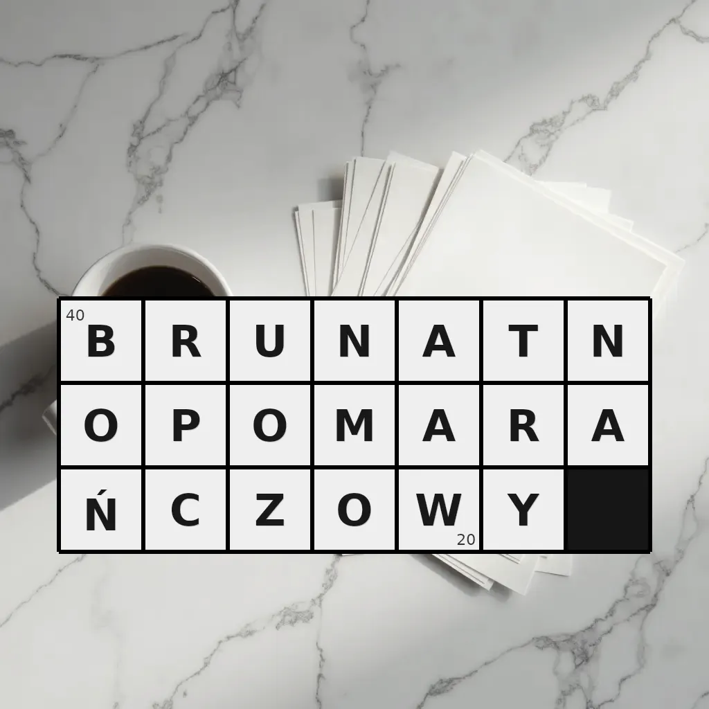 Zawiera litery: A, A, A, B, C, M, N, N, O, O, O, P, R, R, T, U, W, Y, Z, Ń