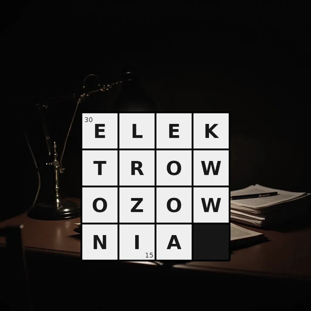 Zawiera litery: A, E, E, I, K, L, N, O, O, O, R, T, W, W, Z