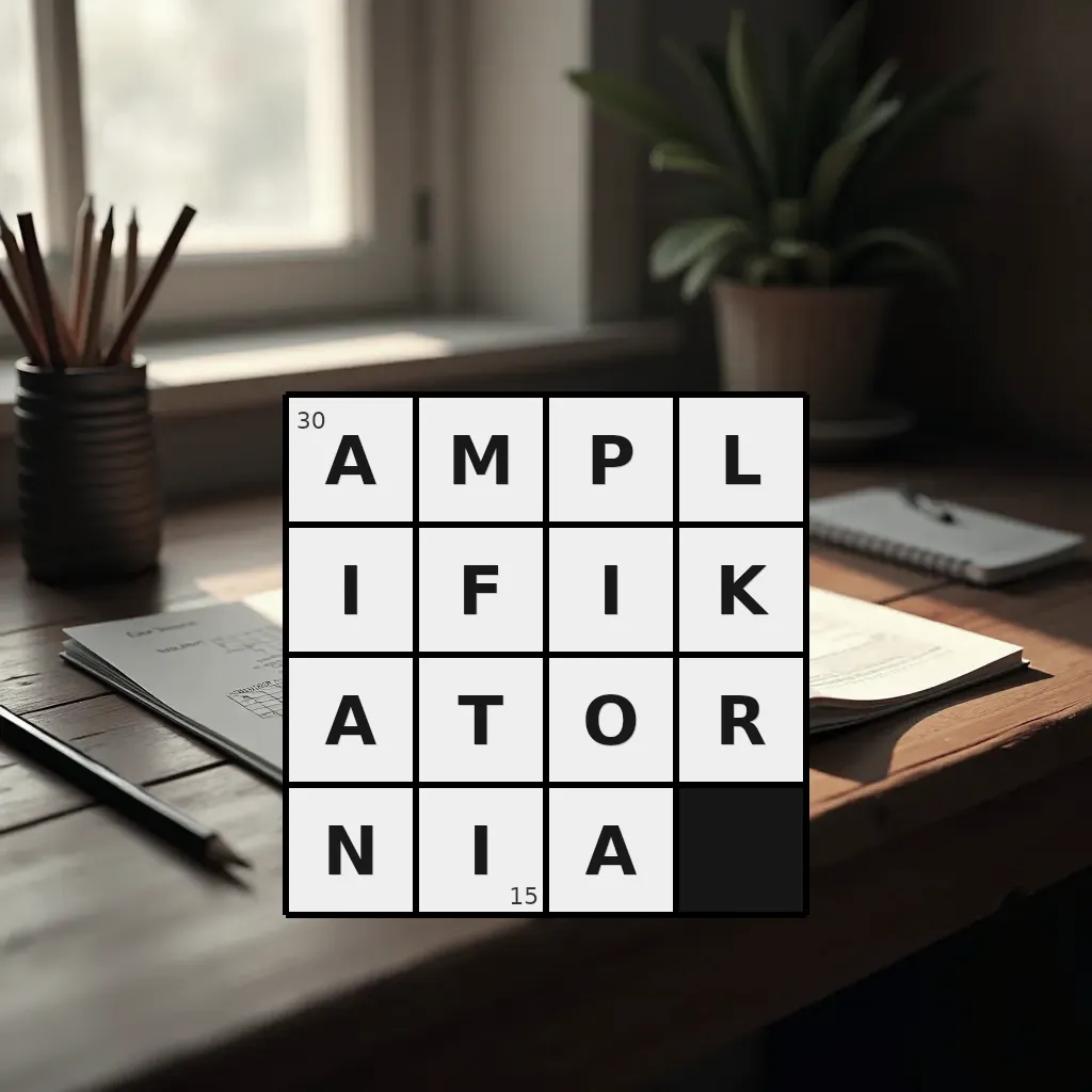 Słowo „amplifikatornia” ma 15 znaków (bez spacji i łączników).