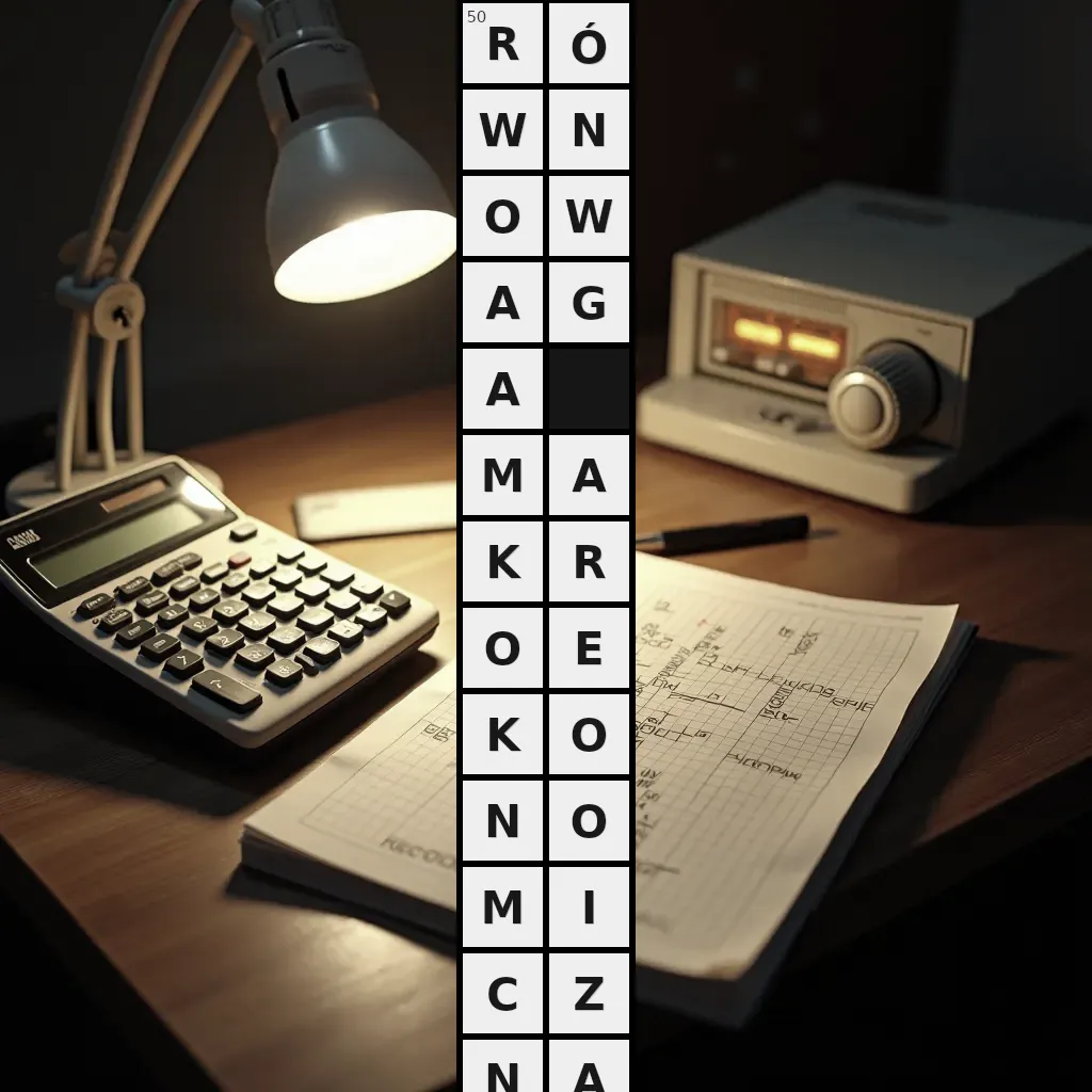 Zawiera litery: A, A, A, A, C, E, G, I, K, K, M, M, N, N, N, O, O, O, O, R, R, W, W, Z, Ó