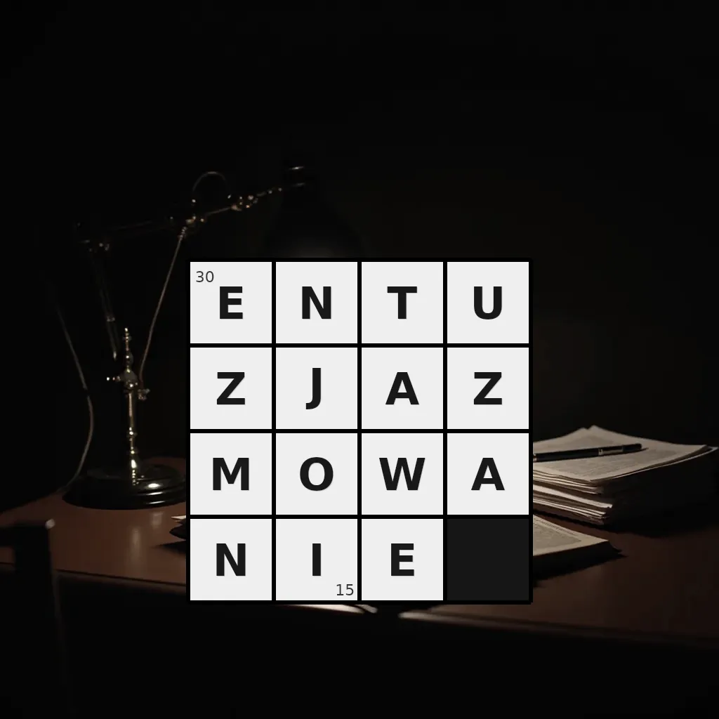 Zawiera litery: A, A, E, E, I, J, M, N, N, O, T, U, W, Z, Z